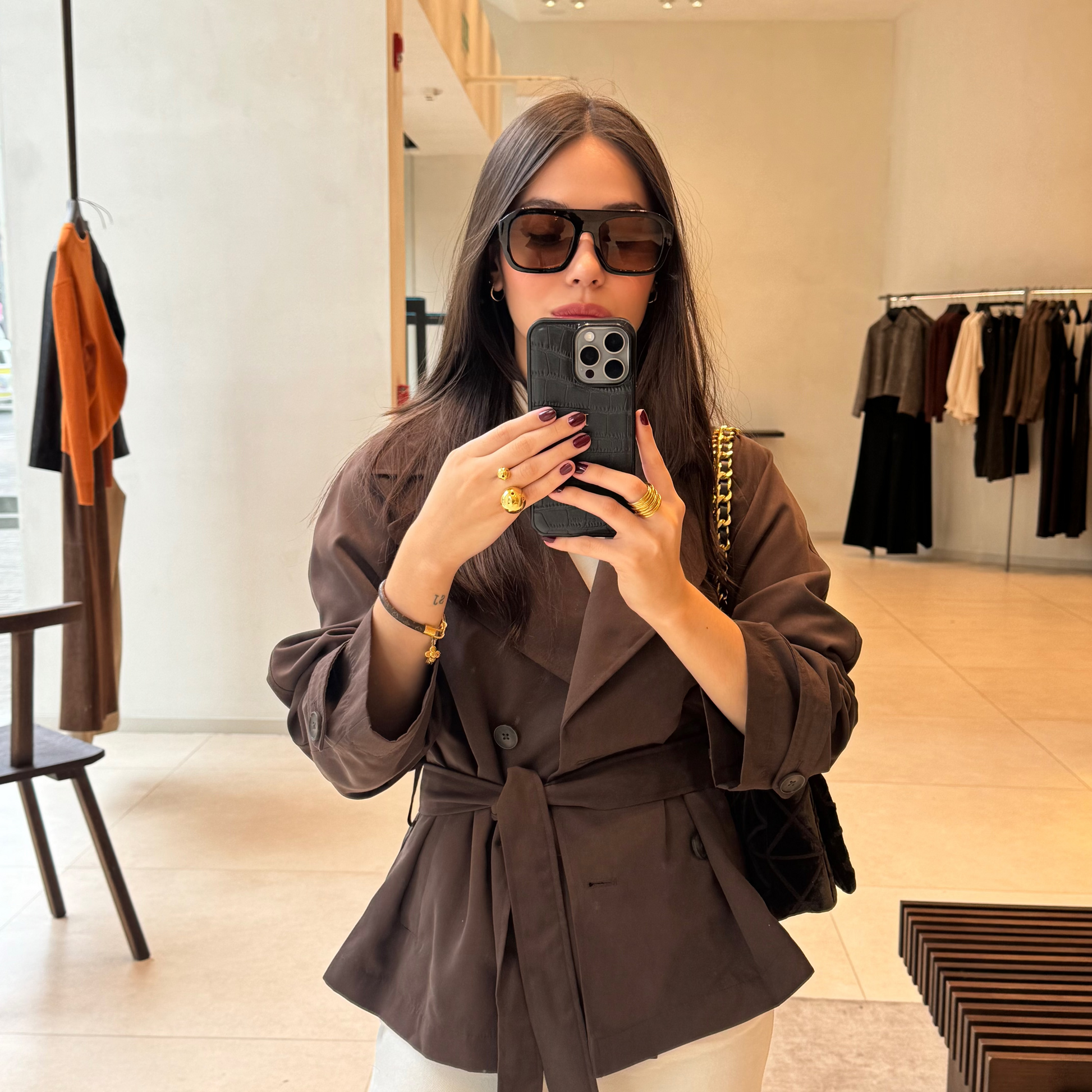 Las GIGI sunglasses con un diseño imponente y atemporal. Estas gafas destacan por su marco negro estructurado y geométrico que aporta carácter y modernidad, mientras que sus lentes en tono café ofrecen una visión cálida y sofisticada.
